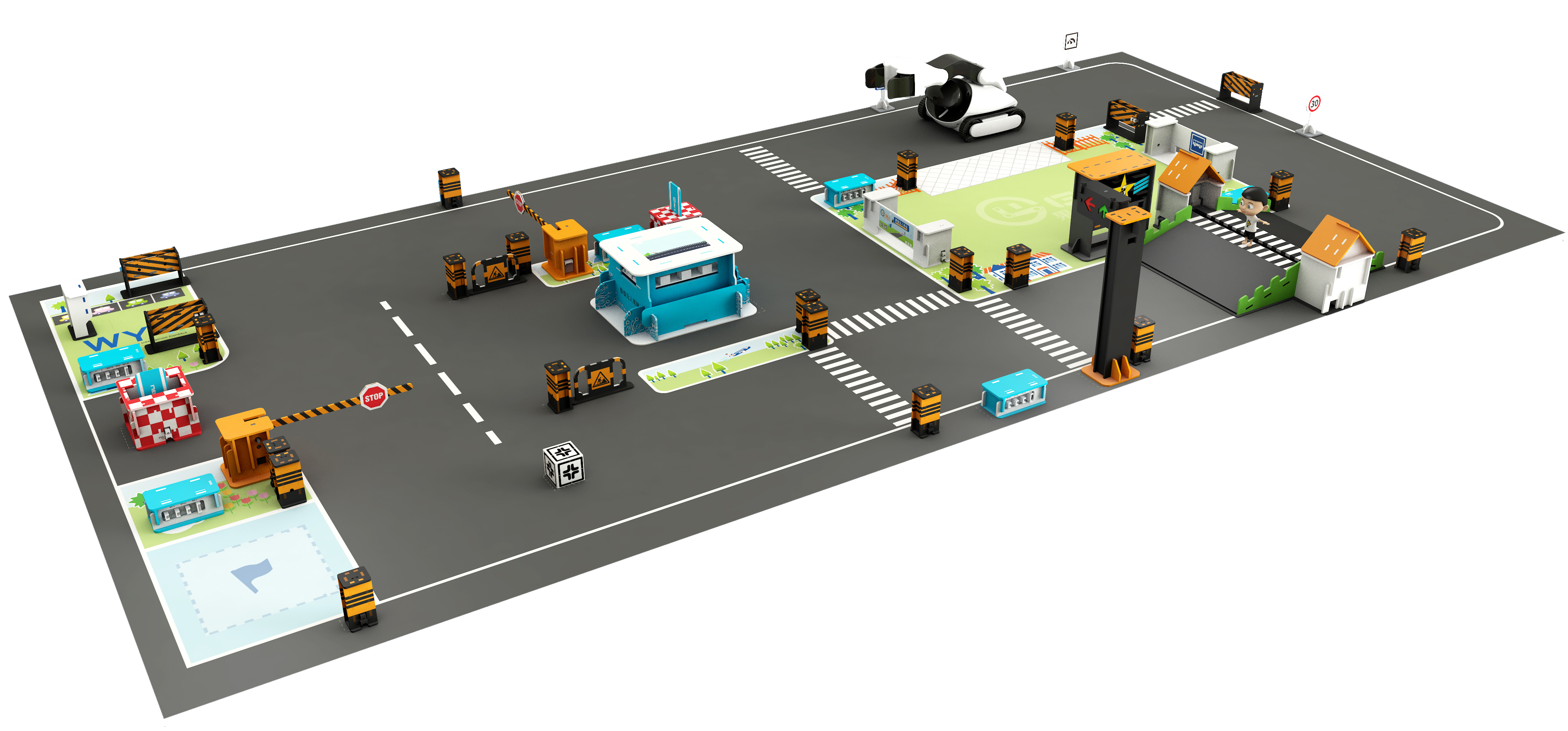 智能(néng)無人(rén)駕駛AI教育主題套件(jiàn)可(kě)實現自動避障,識别紅綠(lǜ)燈、車(chē)道、路(lù)标和(hé)人(rén)臉,禮讓行(xíng)人(rén)等功能(néng)。